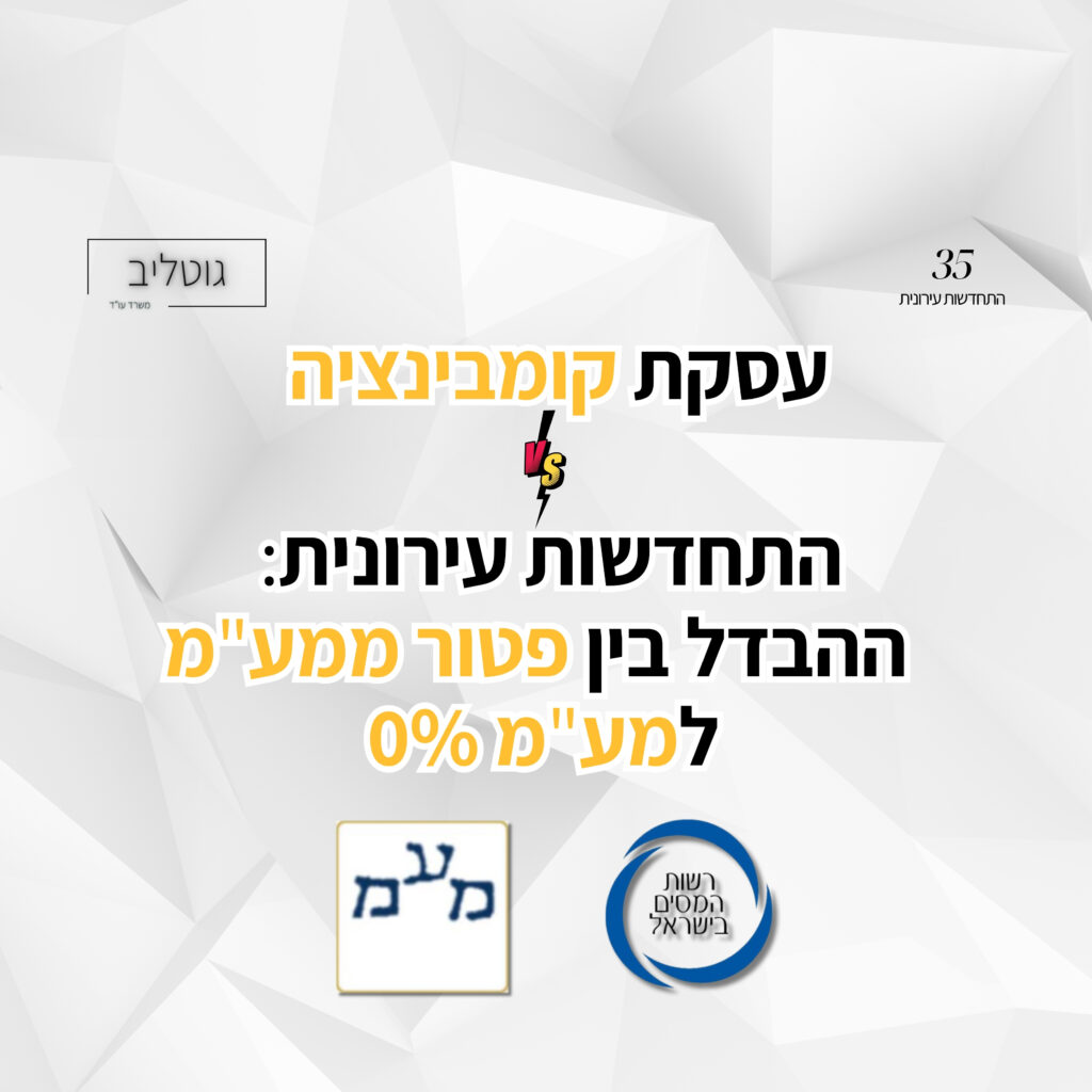 עסקת קומבינציה VS התחדשות עירונית: ההבדל בין פטור ממע״מ למע״מ 0%
